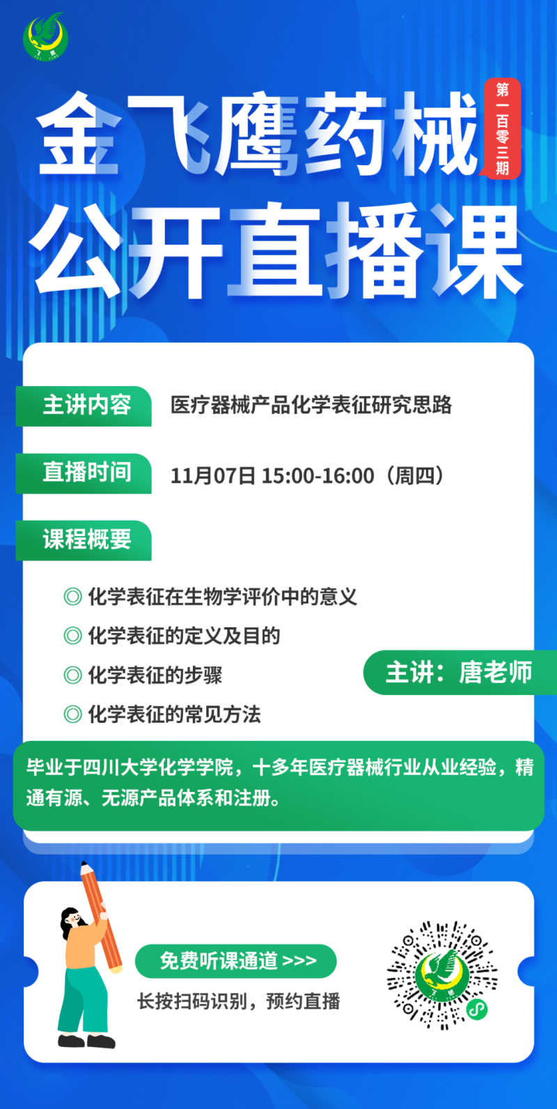 金飛鷹直播培訓(xùn),是每周一次的固定培訓(xùn)欄目,優(yōu)選金飛鷹國內(nèi)外資深注冊/項目老師定期為大家講解醫(yī)療器械注冊相關(guān)知識,解答大家在醫(yī)療器械注冊過程中的諸多疑問。