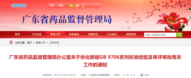 3月28日,廣東省藥監(jiān)局官網(wǎng)發(fā)布《關于優(yōu)化新版GB 9706系列標準檢驗及審評審批有關工作的通知》(以下簡稱《通知》),就廣東省第二類醫(yī)療器械延續(xù)、變更注冊事項執(zhí)行新版標準有關事宜通知如下: