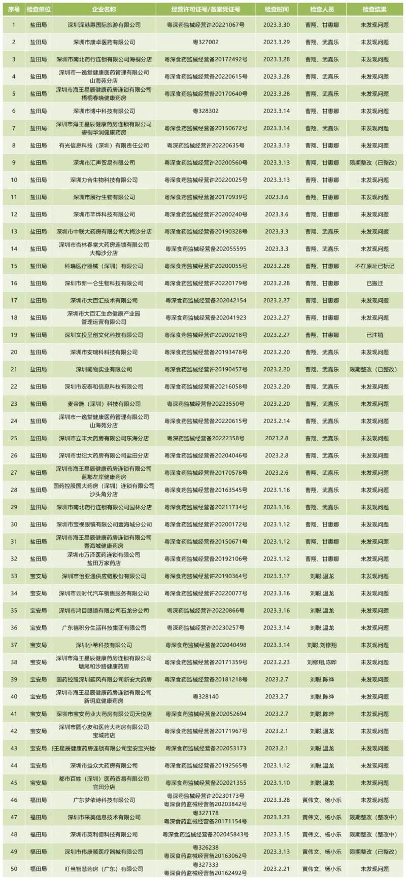 4月13日,深圳市市場監(jiān)督管理局官網(wǎng)公布醫(yī)療器械經(jīng)營企業(yè)監(jiān)督檢查結(jié)果(2023年第二期),共對318家醫(yī)療器械經(jīng)營企業(yè)進行了監(jiān)督檢查,其中有11家需要整改,具體如下: