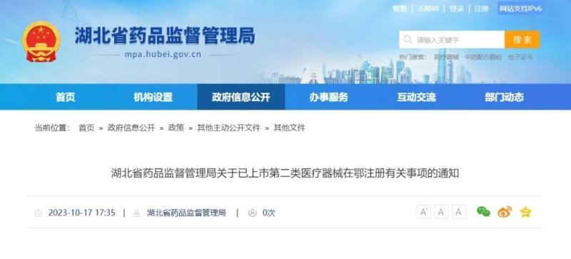 10月17日,湖北省藥監(jiān)局官網(wǎng)發(fā)布《關(guān)于已上市第二類醫(yī)療器械在鄂注冊有關(guān)事項的通知》,具體內(nèi)容如下: