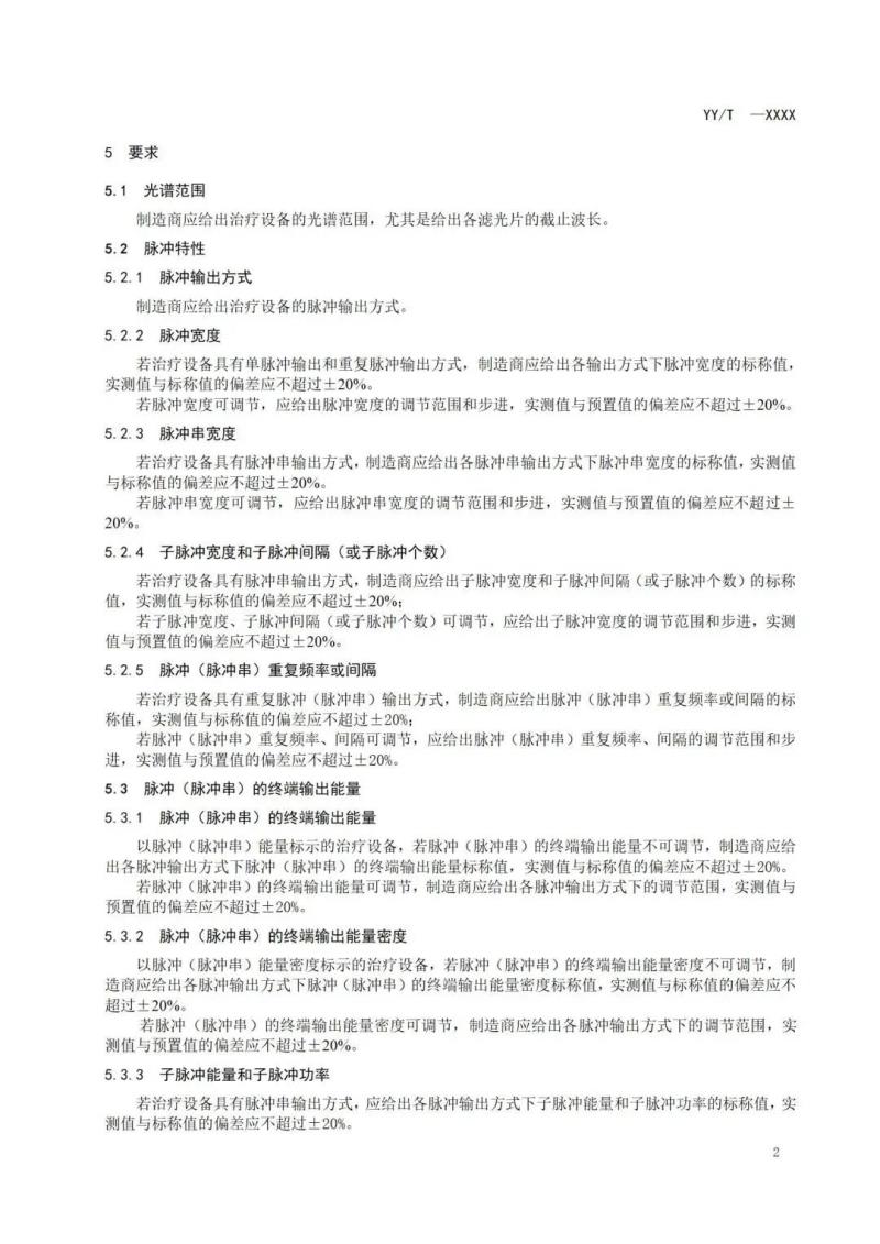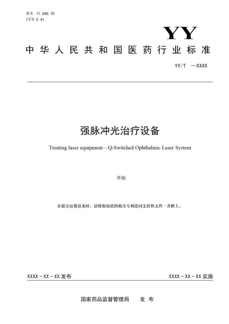 我們將其中《強脈沖光治療設備》標準草案轉載如下: