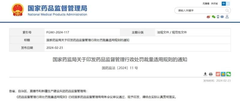 近日,國家藥監(jiān)局發(fā)布《藥品監(jiān)督管理行政處罰裁量適用規(guī)則》(以下簡稱《規(guī)則》),并宣布自2024年8月1日起施行。