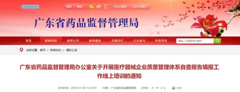 近日,廣東省藥監(jiān)局發(fā)布《關(guān)于開展醫(yī)療器械企業(yè)質(zhì)量管理體系自查報告填報工作線上培訓(xùn)的通知》,其中指出,凡2023年12月31日前登記注冊的醫(yī)療器械注冊人、備案人、受托生產(chǎn)企業(yè)、進(jìn)口醫(yī)療器械代理人,都應(yīng)當(dāng)對質(zhì)量管理體系運行情況進(jìn)行自查,通過廣東省智慧藥監(jiān)企業(yè)專屬網(wǎng)頁提交2023年度質(zhì)量管理體系自查報告。