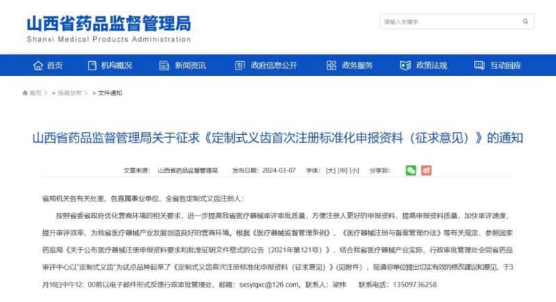 近日,山西省藥監(jiān)局發(fā)布《定制式義齒首次注冊(cè)標(biāo)準(zhǔn)化申報(bào)資料(征求意見(jiàn))》,共包括《定制式義齒首次注冊(cè)申報(bào)資料要求及說(shuō)明》《定制式義齒符合性聲明產(chǎn)品風(fēng)險(xiǎn)管理資料》《醫(yī)療器械安全和性能基本原則清單》《定制式固定義齒產(chǎn)品技術(shù)要求》《定制式活動(dòng)義齒產(chǎn)品技術(shù)要求》《定制式固定義齒說(shuō)明書和最小銷售單元標(biāo)簽樣稿》《定制式活動(dòng)義齒說(shuō)明書和最小銷售單元標(biāo)簽樣稿》8份附件,我們將其中定制式固定義齒產(chǎn)品技術(shù)要求》轉(zhuǎn)載如下,以供相關(guān)企業(yè)參考: