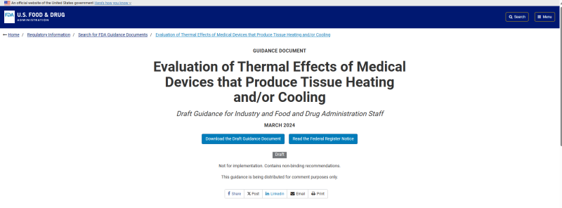 FDA(美國(guó)食品藥品監(jiān)督管理局)近日發(fā)布了一份重要的指南草案,專門針對(duì)那些能夠產(chǎn)生組織加熱和/或冷卻效應(yīng)的醫(yī)療器械的熱效應(yīng)評(píng)估進(jìn)行了詳細(xì)闡述。