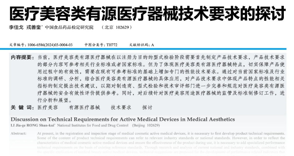 近期,《中國醫(yī)療器械信息》雜志刊登了一篇文章《醫(yī)療美容類有源醫(yī)療器械技術要求的探討》,從市場趨勢、現(xiàn)有標準情況、體現(xiàn)產(chǎn)品臨床特點的技術指標研究、展望與技術探討等方面對有源醫(yī)美產(chǎn)品進行了探討,本期文章我們摘錄了其中部分內容跟大家進行簡單分享。