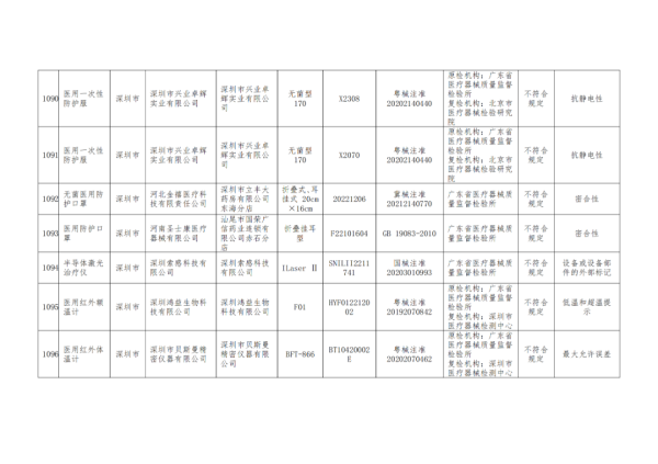 4月22日,廣東藥監(jiān)局發(fā)布《關(guān)于醫(yī)療器械抽查檢驗信息的通告(2024年第1期,總第86期)》,我們通過查看通告中的附件發(fā)現(xiàn),本次共抽查檢驗了1121批次產(chǎn)品,其中有37批次不符合規(guī)定,包括弱視綜合治療儀、半導(dǎo)體激光治療儀、注射泵、臂式電子血壓計等產(chǎn)品,不符合規(guī)定產(chǎn)品具體明細如下: