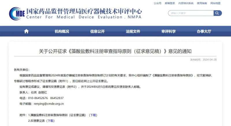 4月28日,國(guó)家藥監(jiān)局器審中心發(fā)布《藻酸鹽敷料注冊(cè)審查指導(dǎo)原則(征求意見稿)》(以下簡(jiǎn)稱《指導(dǎo)原則》),并向社會(huì)公開征集意見。