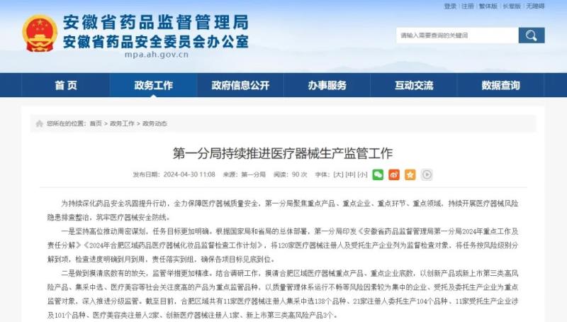 四是強(qiáng)化部門協(xié)作整合資源,工作質(zhì)效更加顯著。按照省局《2024年全省醫(yī)療器械生產(chǎn)監(jiān)督檢查工作計(jì)劃》要求,加強(qiáng)與省局處室、審評(píng)查驗(yàn)中心工作聯(lián)動(dòng)和信息溝通,對(duì)兼具醫(yī)療器械注冊(cè)人、備案人的企業(yè)與合肥市市場(chǎng)監(jiān)管局開(kāi)展聯(lián)合監(jiān)管,有效提升監(jiān)管效能,實(shí)現(xiàn)源頭嚴(yán)防、過(guò)程嚴(yán)管、風(fēng)險(xiǎn)嚴(yán)控,保障上市醫(yī)療器械質(zhì)量安全。