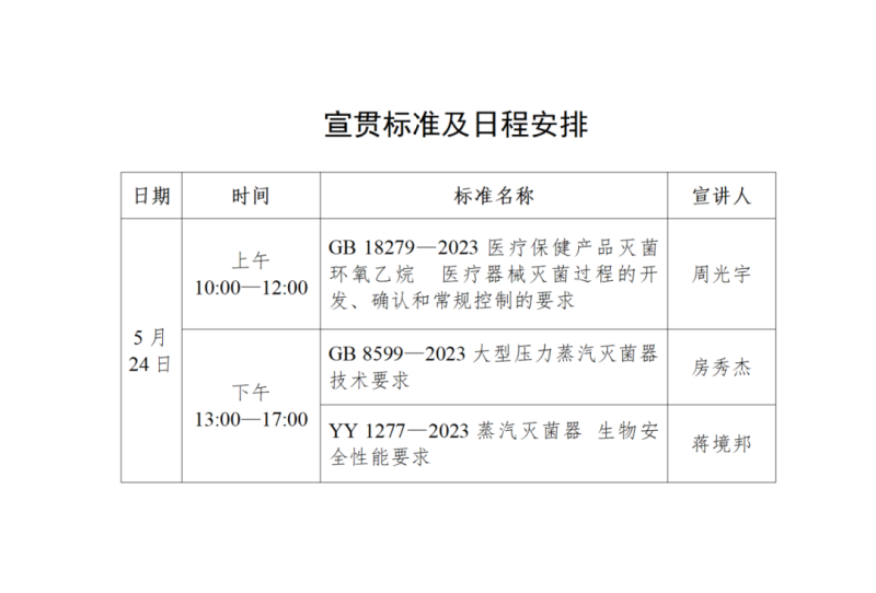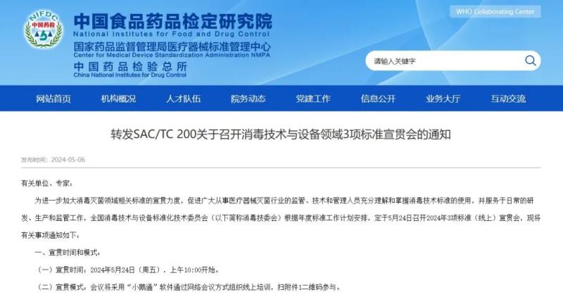 5月6日,國(guó)家藥監(jiān)局醫(yī)療器械標(biāo)準(zhǔn)管理中心轉(zhuǎn)發(fā)了《SAC/TC 200關(guān)于召開消毒技術(shù)與設(shè)備領(lǐng)域3項(xiàng)標(biāo)準(zhǔn)宣貫會(huì)的通知》,其中提到,全國(guó)消毒技術(shù)與設(shè)備標(biāo)準(zhǔn)化技術(shù)委員會(huì)擬于2024年5月24日舉辦相關(guān)標(biāo)準(zhǔn)宣貫培訓(xùn),培訓(xùn)內(nèi)容為GB 18279-2023《醫(yī)療保健產(chǎn)品滅菌 環(huán)氧乙烷 醫(yī)療器械滅菌過程的開發(fā)、確認(rèn)和常規(guī)控制的要求》等3項(xiàng)標(biāo)準(zhǔn)解讀,具體如下: