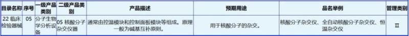 核酸分子雜交儀是采用核酸分子雜交技術(shù)檢測(cè)待測(cè)基因組中是否含有已知基因序列的設(shè)備。核酸分子雜交具有靈敏度高和特異性好的特點(diǎn),在醫(yī)學(xué)上,目前已用于多種遺傳性疾病的基因診斷、惡性腫瘤的基因分析、傳染病病原體的檢測(cè)等領(lǐng)域中。核酸分子雜交儀在我國(guó)作為第二類醫(yī)療器械管理,分類編碼22-05-05。