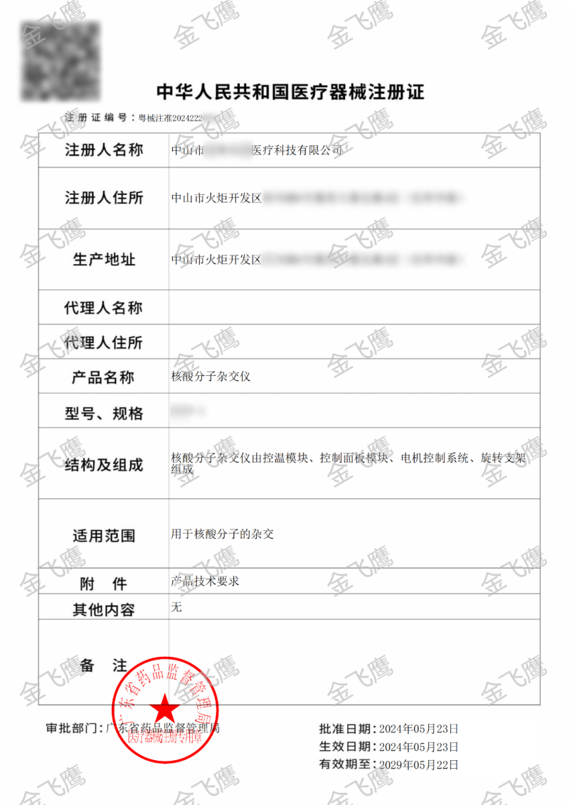 近日,金飛鷹輔導(dǎo)中山一家企業(yè)成功取得【核酸分子雜交儀的注冊(cè)證,老規(guī)矩,本期文章就跟大家分享一下此類產(chǎn)品注冊(cè)的相關(guān)事項(xiàng)。