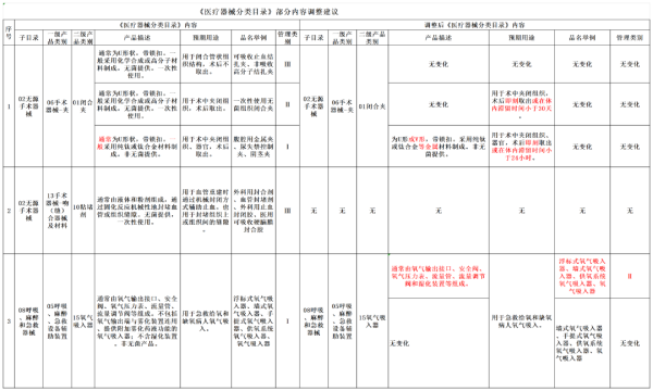 以上僅以圖片形式對本次擬調(diào)整的《醫(yī)療器械分類目錄》內(nèi)容進(jìn)行展示,如需查看表格文件,請點(diǎn)擊“閱讀原文”。