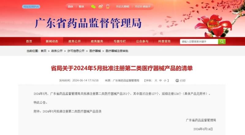 近日,廣東省藥監(jiān)局發(fā)布公告稱,2024年5月,廣東省藥監(jiān)局共批準(zhǔn)注冊醫(yī)療器械產(chǎn)品251個,其中首次注冊127個,延續(xù)注冊124個。