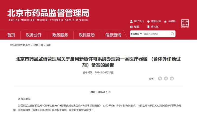 申請(qǐng)人可通過首都之窗網(wǎng)站(https://www.beijing.gov.cn/)或北京市藥品監(jiān)督管理局網(wǎng)站(http://yjj.beijing.gov.cn)企業(yè)服務(wù)平臺(tái)辦理第一類醫(yī)療器械(含體外診斷試劑)備案。