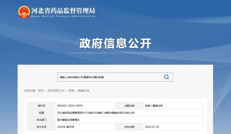 7月2日,河北藥監(jiān)局發(fā)布公告稱,按照《中華人民共和國行政許可法》《醫(yī)療器械監(jiān)督管理條例》有關規(guī)定,根據(jù)企業(yè)申請,該局依法注銷了醫(yī)用中心供氧系統(tǒng)、一次性使用無菌敷料、醫(yī)用分子篩制氧設備、定制式矯治器等47個第二類醫(yī)療器械注冊證書,具體明細如下: