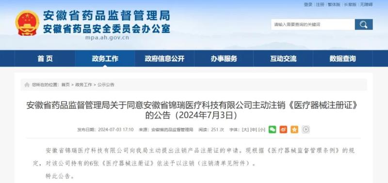 近日,安徽省藥監(jiān)局發(fā)布公告稱,安徽省錦瑞醫(yī)療科技有限公司向該局主動提出注銷產(chǎn)品注冊證的申請。根據(jù)《醫(yī)療器械監(jiān)督管理?xiàng)l例》的規(guī)定,對該公司持有的6張《醫(yī)療器械注冊證》依法予以注銷。我們通過查看附件發(fā)現(xiàn),此次注銷的產(chǎn)品均為醫(yī)用口罩,具體明細(xì)如下: