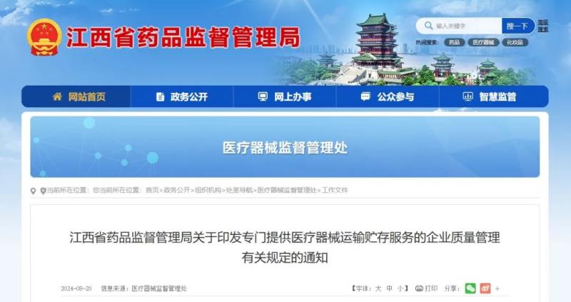 8月20日,江西省藥監(jiān)局發(fā)布《專門提供醫(yī)療器械運(yùn)輸貯存服務(wù)的企業(yè)質(zhì)量管理有關(guān)規(guī)定》(以下簡稱《規(guī)定》),并宣布自2025年1月1日起施行。