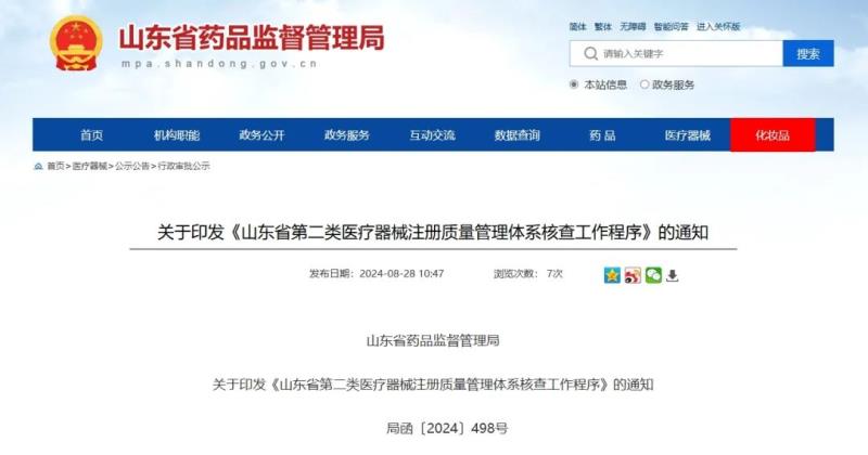 8月28日,山東省藥監(jiān)局發(fā)布新版《山東省第二類醫(yī)療器械注冊質(zhì)量管理體系核查工作程序》(以下簡稱《工作程序》),并宣布自發(fā)布之日(2024年8月28日)起施行。