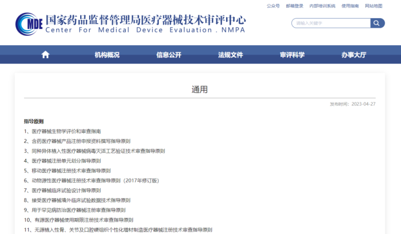 我們在國家藥監(jiān)局器審中心網(wǎng)站“審評科學”欄目下點擊“指導原則”,進入“分類目錄--指導原則-標準”-23通用,這里包含了很多通用指導原則,其中撰寫臨床評價報告時可參照的指導原則如下(點擊文字即可跳轉(zhuǎn)鏈接):