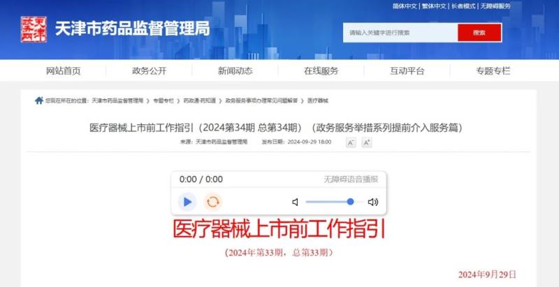近日,天津市藥監(jiān)局發(fā)布新一期醫(yī)療器械上市前工作指引,匯總了醫(yī)療器械產(chǎn)品注冊(cè)申報(bào)前的提前介入服務(wù)相關(guān)要求,具體如下:
