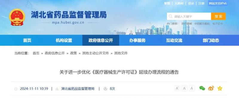 11月11日,湖北省藥監(jiān)局發(fā)布《關(guān)于進(jìn)一步優(yōu)化〈醫(yī)療器械生產(chǎn)許可證〉延續(xù)辦理流程的通告》(以下簡稱《通告》),具體內(nèi)容如下: