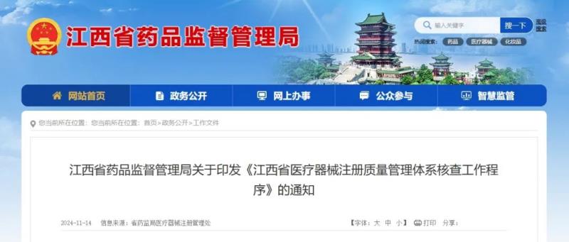 11月14日,江西省藥監(jiān)局發(fā)布《江西省醫(yī)療器械注冊(cè)質(zhì)量管理體系核查工作程序》(以下簡(jiǎn)稱《工作程序》),并指出,《江西省藥品監(jiān)督管理局關(guān)于印發(fā)〈江西省醫(yī)療器械注冊(cè)質(zhì)量管理體系核查工作程序〉的通知》(贛藥監(jiān)規(guī)〔2022〕12號(hào))同時(shí)廢止。