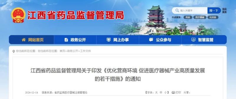 11月14日,江西省藥監(jiān)局發(fā)布《優(yōu)化營商環(huán)境 促進醫(yī)療器械產業(yè)高質量發(fā)展的若干措施》(以下簡稱《若干措施》),并宣布《江西省藥品監(jiān)督管理局關于印發(fā)〈優(yōu)化營商環(huán)境 促進醫(yī)療器械產業(yè)高質量發(fā)展“十三條”惠企政策〉的通知》(贛藥監(jiān)規(guī)〔2022〕7號)和《江西省藥品監(jiān)督管理局關于做好優(yōu)化營商環(huán)境 促進醫(yī)療器械產業(yè)高質量發(fā)展“十三條”惠企政策實施工作的通知》(贛藥監(jiān)規(guī)〔2022〕10號)同時廢止。