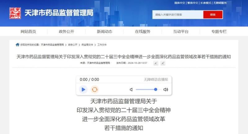近日,天津市藥監(jiān)局發(fā)布《深入貫徹黨的二十屆三中全會精神進一步全面深化藥品監(jiān)管領(lǐng)域改革若干措施的通知》(以下簡稱《若干措施》),以落實天津市委十二屆六次全會和國家藥監(jiān)局全面深化改革部署要求,全鏈條支持生物醫(yī)藥產(chǎn)業(yè)高質(zhì)量發(fā)展,全生命周期保障藥品高水平安全,全方位加強高效能監(jiān)管和高素質(zhì)專業(yè)化干部隊伍建設(shè)?!度舾纱胧芬愿帽Wo和促進人民健康為目標,共制定4個方面27條深化藥品監(jiān)管領(lǐng)域改革具體措施。