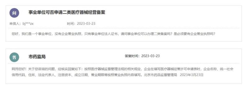 根據(jù)北京市藥監(jiān)局的答復(fù),按照醫(yī)療器械監(jiān)督管理法規(guī)的相關(guān)規(guī)定,企業(yè)在填寫醫(yī)療器械經(jīng)營(yíng)備案/許可申請(qǐng)表時(shí),企業(yè)名稱、統(tǒng)一社會(huì)信用代碼、住所、法定代表人、注冊(cè)資本、成立日期、營(yíng)業(yè)期限等按照營(yíng)業(yè)執(zhí)照內(nèi)容填寫。