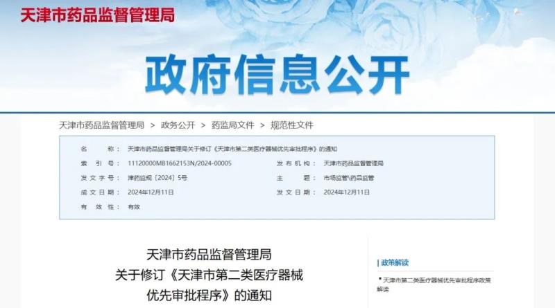 近日,天津市藥監(jiān)局發(fā)布《天津市第二類醫(yī)療器械優(yōu)先審批程序》(修訂版)(以下簡(jiǎn)稱《程序》),其中第十五條提到,對(duì)于符合下列情形之一的天津市第二類醫(yī)療器械產(chǎn)品,納入天津市醫(yī)療器械鼓勵(lì)清單,參照本程序時(shí)限要求開展優(yōu)先審評(píng)、優(yōu)先核查及優(yōu)先審批,鼓勵(lì)醫(yī)療器械新技術(shù)研發(fā)與應(yīng)用: