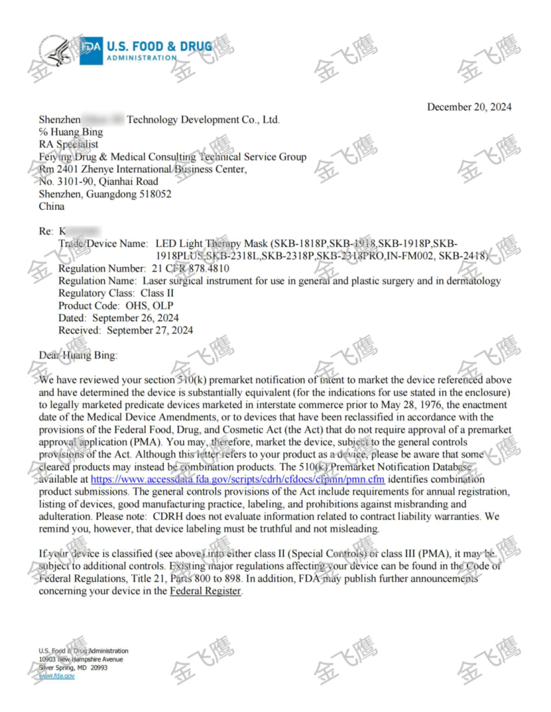 取得雙K號(hào)的案例實(shí)屬首例,但紅藍(lán)光面罩我們此前已積累了不少案例,今年10月,我們輔導(dǎo)的東莞一家企業(yè)成功獲批了紅藍(lán)光面罩510(k),2022年也就此類產(chǎn)品宣傳過(guò)一次。(戳此回顧→紅藍(lán)光面罩)