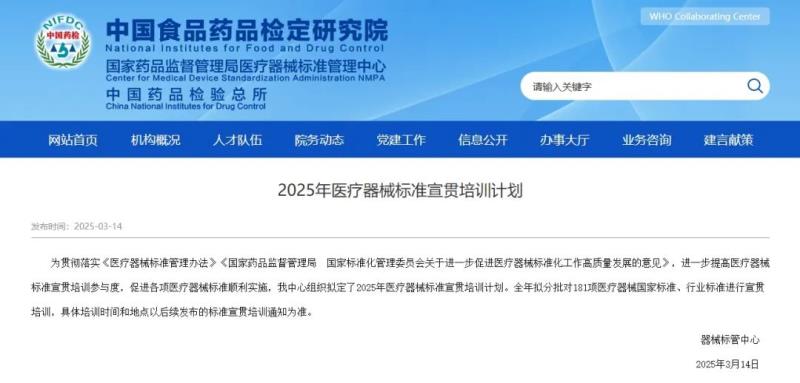 近日,國家藥監(jiān)局醫(yī)療器械標準管理中心組織擬定并對外公開了2025年醫(yī)療器械標準宣貫培訓計劃。根據該通知內容,全年器械標管中心擬分批對181項醫(yī)療器械國家標準、行業(yè)標準進行宣貫培訓,大致安排如下(具體培訓時間和地點后續(xù)會發(fā)布標準宣貫培訓通知):