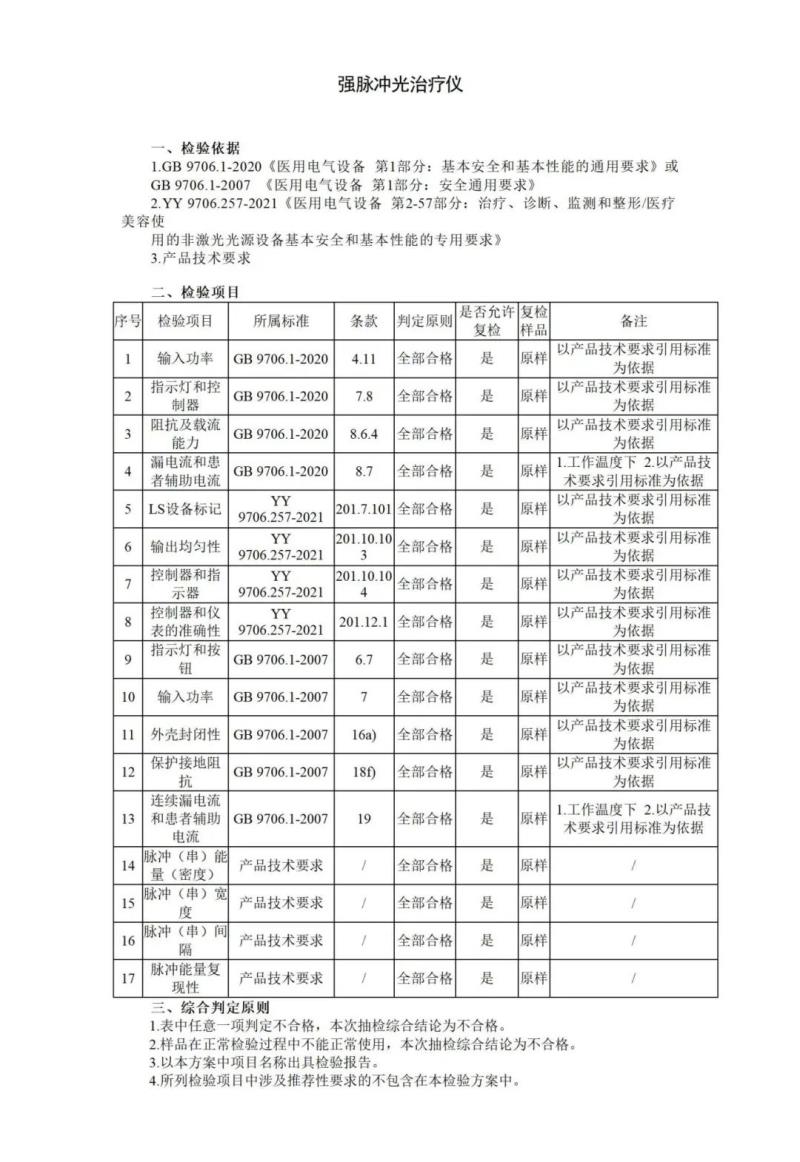3月26日,國(guó)家藥監(jiān)局官網(wǎng)發(fā)布《2025年國(guó)家醫(yī)療器械抽檢產(chǎn)品檢驗(yàn)方案,其中強(qiáng)脈沖光