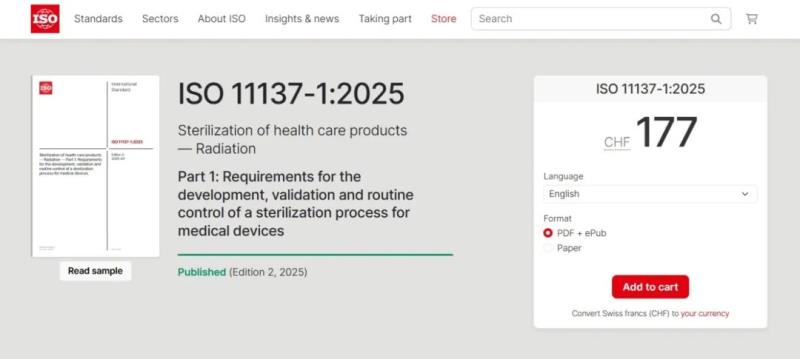 近日,國際標準化組織發(fā)布了有關醫(yī)療保健產品輻射滅菌的新版標準ISO 11137-1:2025 Sterilization of health care products — Radiation — Part 1: Requirements for the development, validation and routine control of a sterilization process for medical devices,通過查看ISO官網發(fā)布的標準樣本,我們給大家整理了本次標準主要更新內容: