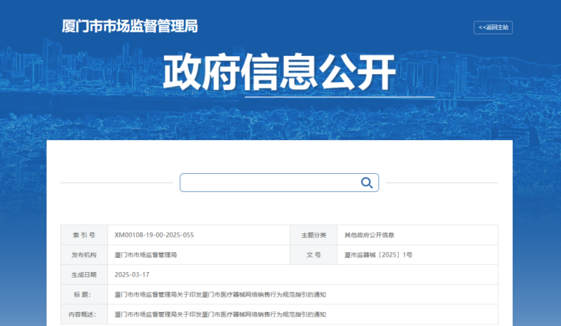 近日,廈門市市場監(jiān)督管理局發(fā)布《廈門市醫(yī)療器械網(wǎng)絡(luò)銷售行為規(guī)范指引》(以下簡稱《指引》),以貫徹落實醫(yī)療器械網(wǎng)絡(luò)銷售常態(tài)化監(jiān)管要求,引導醫(yī)療器械網(wǎng)絡(luò)銷售經(jīng)營者加強合規(guī)管理,保證醫(yī)療器械在網(wǎng)絡(luò)銷售環(huán)節(jié)的質(zhì)量安全。《指引》全文如下: