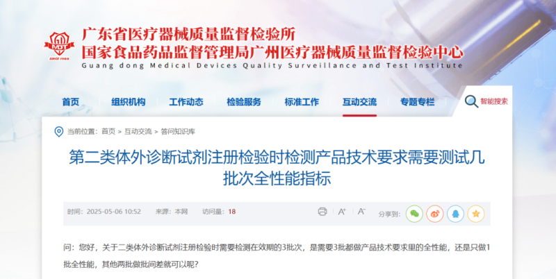 根據(jù)廣東省醫(yī)療器械質(zhì)量監(jiān)督檢驗(yàn)所的答復(fù),二類體外診斷試劑檢測可選擇只做1批全性能,其他兩批做批間差。鑒于試劑注冊檢驗(yàn)需要配套儀器資料,因此建議待儀器性能注冊檢測合格后或儀器已經(jīng)過第三方的計(jì)量校準(zhǔn),再申請?jiān)噭┳詸z驗(yàn)。