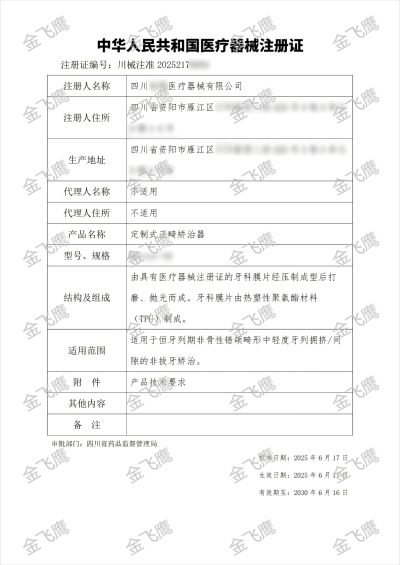 近日,金飛鷹輔導四川及廣東兩家企業(yè)成功取得【正畸矯治器】的注冊證,老規(guī)矩,本期文章就跟大家分享一下此類產品注冊的相關事項。