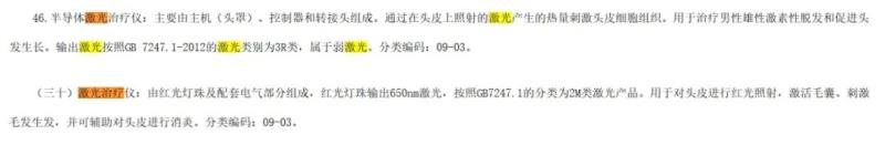 激光生發(fā)儀,主要通過在頭皮上照射的激光產(chǎn)生的熱量刺激頭皮細(xì)胞組織,用于刺激毛發(fā)生長,一般用的是2M類或3R類激光。國家藥監(jiān)局醫(yī)療器械標(biāo)準(zhǔn)管理中心在《2018年醫(yī)療器械產(chǎn)品分類界定結(jié)果匯總》及《2023年第三次醫(yī)療器械產(chǎn)品分類界定結(jié)果匯總》中,分別對此類產(chǎn)品的預(yù)期用途及分類進(jìn)行明確:作為第二類醫(yī)療器械管理,分類編碼09-03。產(chǎn)品的臨床評價方式為同品種對比。