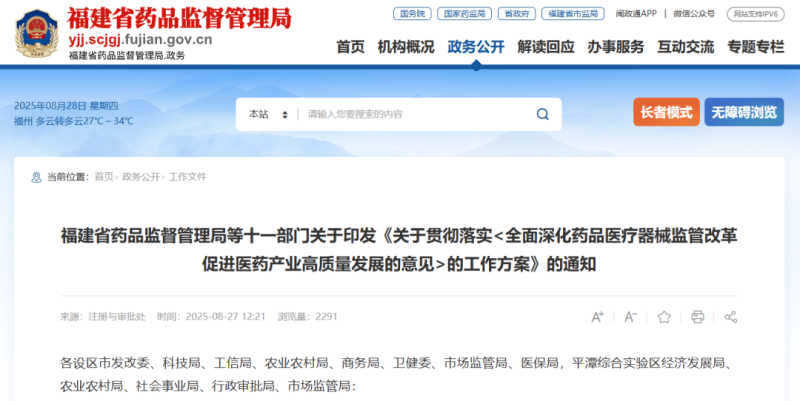 近日,福建省藥監(jiān)局發(fā)布《關(guān)于貫徹落實<全面深化藥品醫(yī)療器械監(jiān)管改革促進醫(yī)藥產(chǎn)業(yè)高質(zhì)量發(fā)展的意見>的工作方案》(以下簡稱《工作方案》),從大力支持藥械研發(fā)創(chuàng)新、提高藥械審評審批質(zhì)效、提升醫(yī)藥產(chǎn)業(yè)全過程合規(guī)水平、擴大醫(yī)藥產(chǎn)業(yè)對外開放合作、強化產(chǎn)業(yè)發(fā)展和監(jiān)管體系保障五個方面共提出了24條舉措,并提到,力爭到